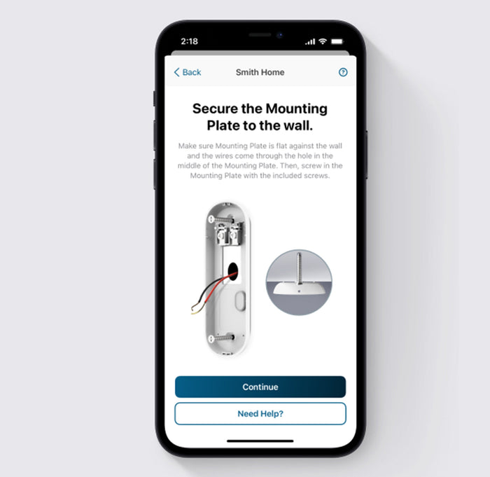 Drill and secure the mounting plate to the wall, then connect the doorbell to the mounted plate.